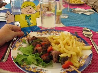 That evening, I hung out with yet another local friend, Demba Diouf who worked at the front desk of our hotel. He was my French-speaking outlet most evenings, and agreed to go shopping with me on the last day I was there for all those items I needed to get at a Senegalese discount. Marie-Therese, another teacher from St. Bernadette invited me over for dinner. I learned that Seneglaese time is a bit less prompt then US time. We had agreed on 8pm. She picked me up at 9:30pm. This was the most adventurous part of the trip. I agreed to meet her at the end of the street, where she and her husband picked me up. Bear in mind, I met this woman briefly at the school, and emailed twice. I also found out that getting/giving directions is somewhat of a skill that foreigners can't master overnight. There is no "address" just a description you give like, on the corner of the McDonalds and the Shell station. So I asked Demba to write down this description in case I may need to take a cab home. Marie-Therese was very kind, gave me a tour of her home, and I got a chance to see a Senegalese home, which was great. She lived in Dakar ville quartier H L M grand Yoff with her husband Roger and four children: Mariane 15, Nathalie 13, Josephine 8 and Georges 2.